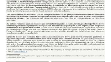 Laïcité et religion au sein de l’école et dans la société : évaluation des attitudes citoyennes des collégiens et des lycéens